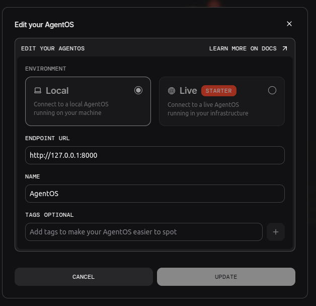 Ou usar o AgentOS, primeiro adicione no seu código:
